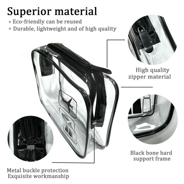 - -Premium Material: TSA approved toiletry bag are made of transparent Waterproof PVC material, eco-friendly to see and get items quickly.