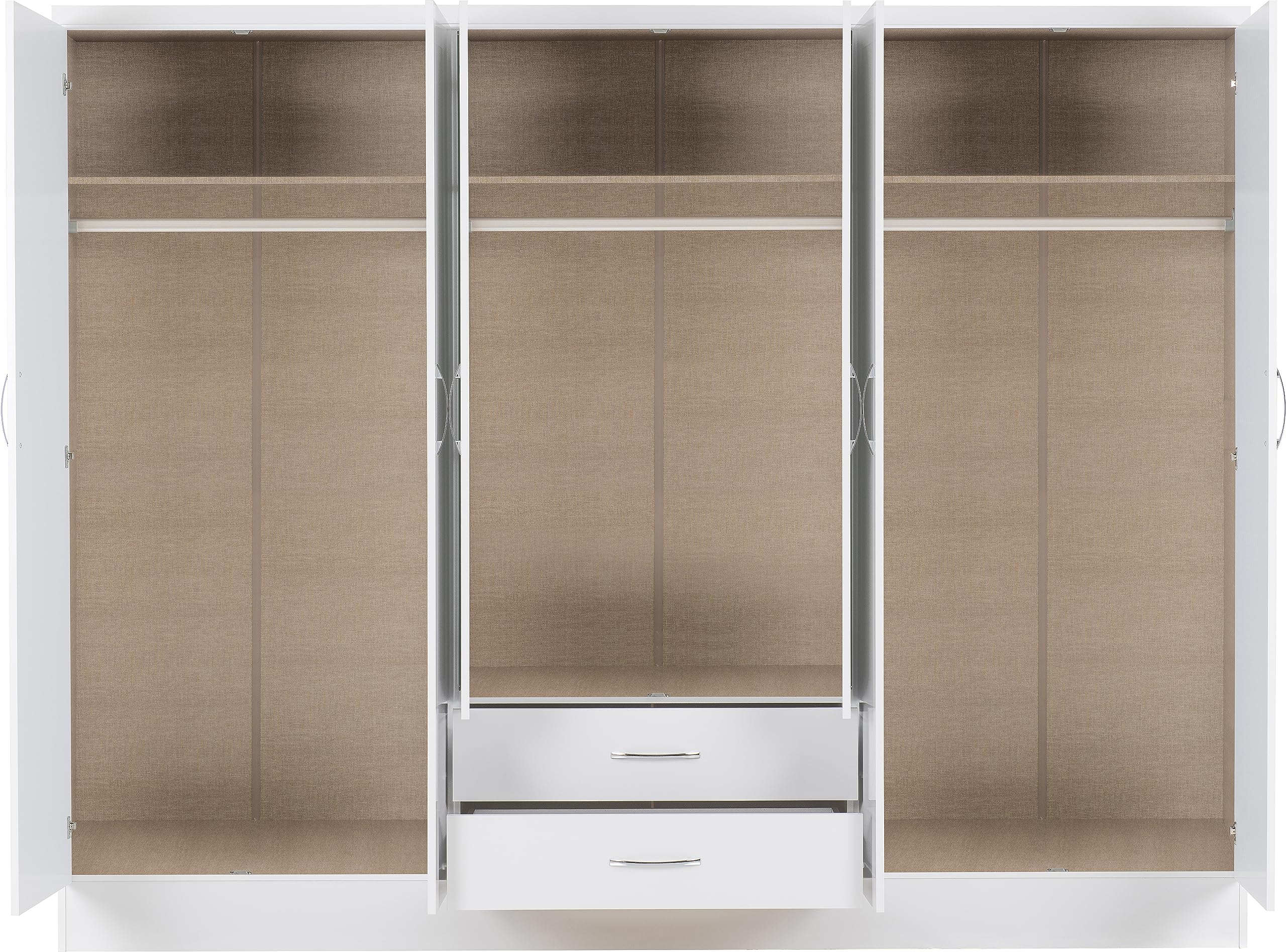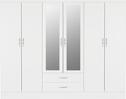 Home Bedroom Furniture Wardrobe 6 Door 2 Drawer in White Gloss