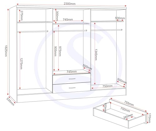• Dimensions - Width: 230 cm x Depth: 52 cm x Height: 183 cm